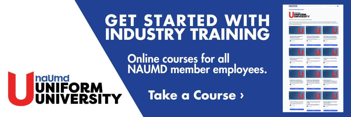 All employees of NAUMD member companies can create a profile at TheUniformNetwork.com to access the full course library. In addition to these courses, the portal includes hundreds of resources—articles, PDFs, videos, and recorded presentations from recent NAUMD conventions.