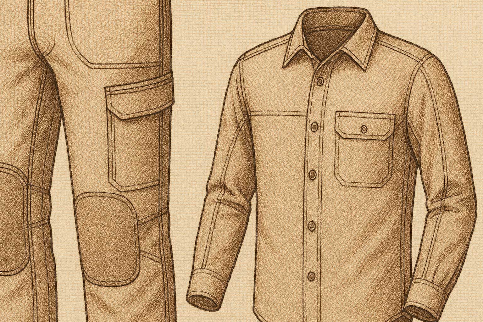 - High-stress zone reinforcement: elbows, knees, seat, pocket edges. Use heavier weave, taped seams, or twill overlays.